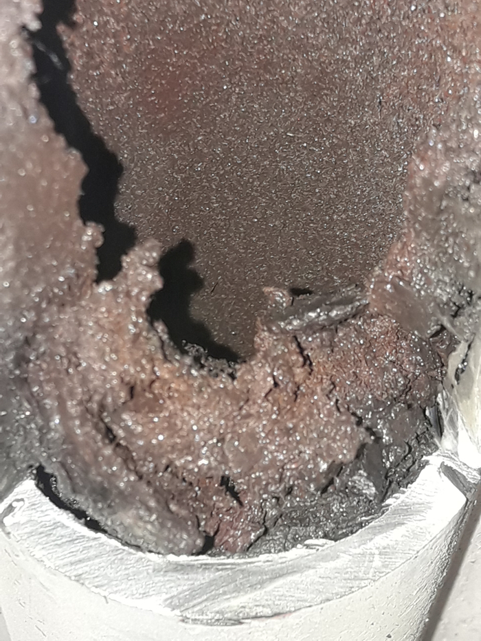 - Extreme Belagbildung: Eine Feststoffanalyse ergab Ablagerungen bestehend aus 58% Kupferoxid (CuO) und 34% Eisenoxid.